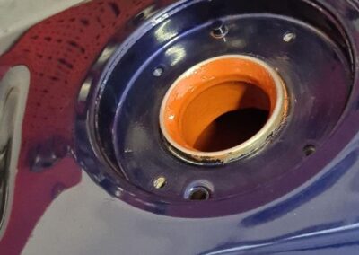 3. Fase di incapsulamento: il kit che avete tra le mani è pronto all’uso, ma è comunque possibile utilizzarne una quantità ridotta a seconda delle vostre esigenze (ad esempio, kit grande per serbatoio piccolo). Rispettare sempre la giusta percentuale di catalisi: 1 parte di catalizzatore, 3 di resina. [Ogni 75 grammi di resina, sono necessari 25 grammi di catalizzatore]. Prima dell’uso, agitare bene il catalizzatore e lo smalto. Volendo, è possibile anche travasare tutto il prodotto in un secondo contenitore al fine di riuscire ad amalgamare bene il tutto; se necessario, rendere il composto più fluido versando al suo interno il 5-10% di diluente nitro.